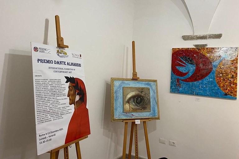 Alla mostra di pittura, scultura (anche lignea), ceramica e fotografia, patrocinata dalla “Società Dante Alighieri”, dalla Regione Lazio e da Roma Capitale, hanno esposto artisti della più varia estrazione e provenienza, tutti accumulati da un “comune sentire dantesco” che li porta ad esprimere, ognuno nel suo campo e a suo modo, la stessa riattualizzazione del “folle volo” dell’Alighieri oltretomba.